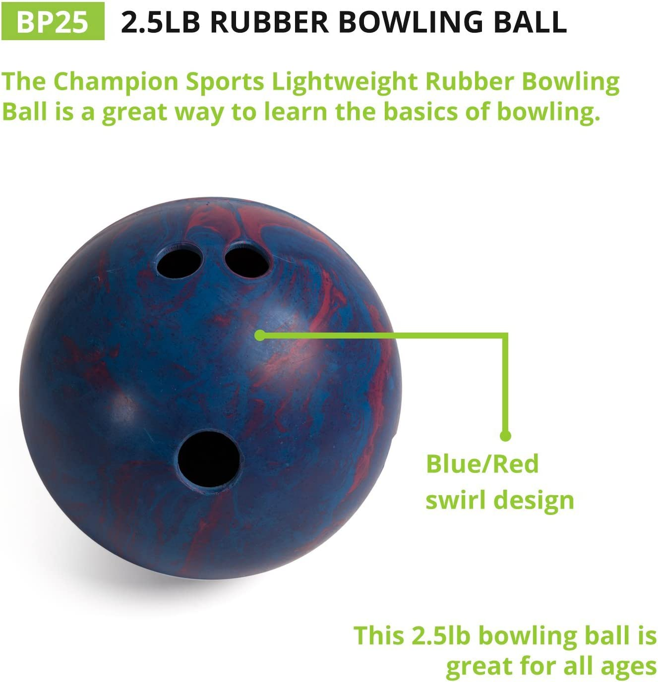 Champion Sports Rubber Bowling Ball: Lightweight Soft Ball for Training & Kids Games (BP25)