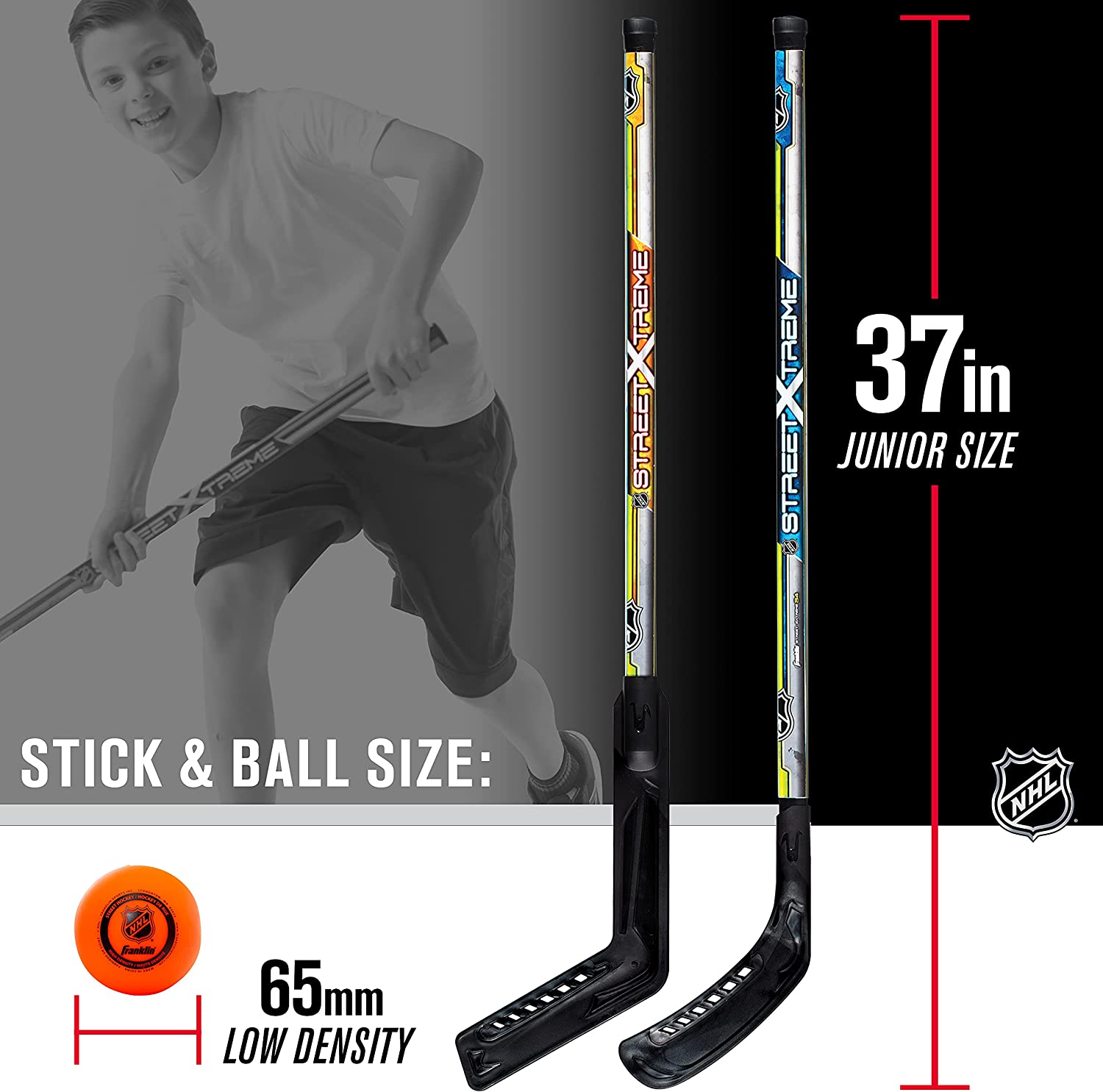 Franklin Sports NHL Kids Street Hockey Stick Set - Includes (2) Youth Street Hockey Sticks + (1) Outdoor Roller Hockey Ball - Perfect Hockey Starter Set for Kids