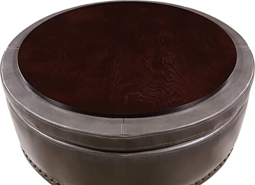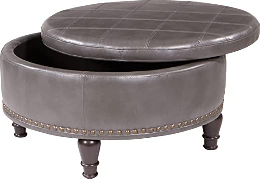 OSP Home Furnishings Augusta Round Storage Ottoman with Decorative Nail Head and Flip Cover, with Tray Finish, Turquoise Faux Leather